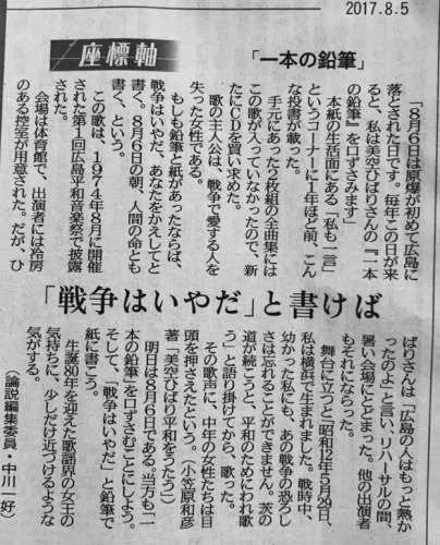 Jul 01, 2021 · 広島市は1日、平和記念公園にある原爆供養塔に納められた原爆死没者の遺骨約7万人分のうち、名前が分かっていながら引き取り手のない無縁遺骨815人の氏名を 広島原爆の日. 8月6日、外出許可をもらって家族で平和記念式典に参列することにしました。 しかし平和記念公園に向かう 途中 ( とちゅう ) 、 禎子 ( さだこ ) さんは歯ぐきから出血し体調を 崩 ( くず ) したので式典には参加せず、すぐ病院に 戻 ( もど ) りました。